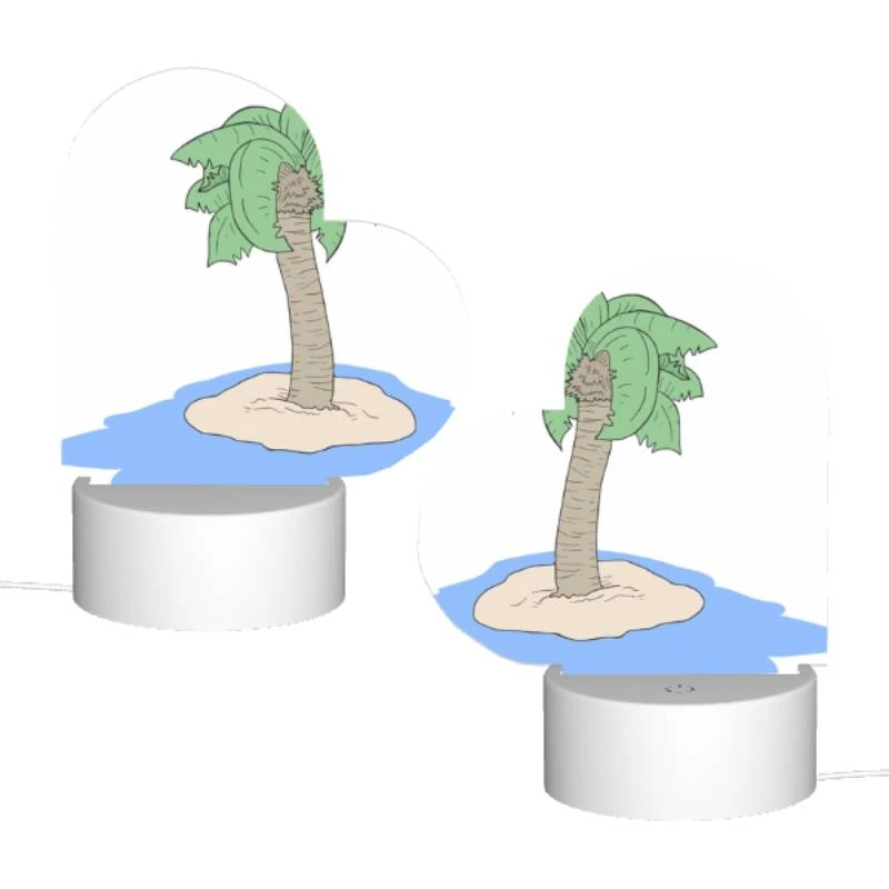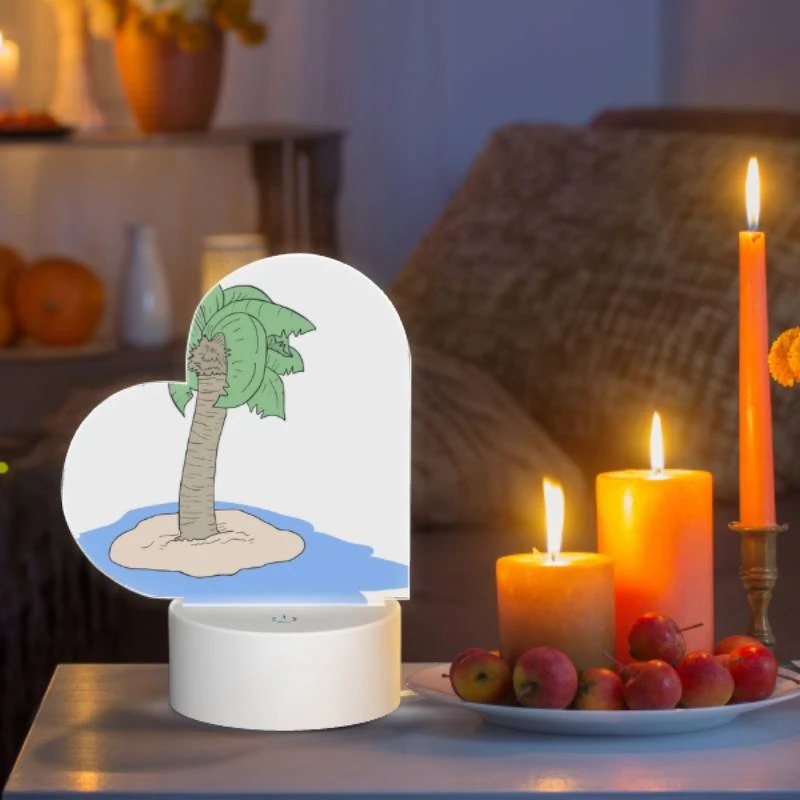 Love Acrylic Night Light, A Cartoon Drawing Of A Palm Tree On A Small Island.
