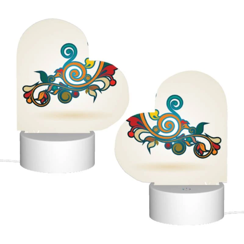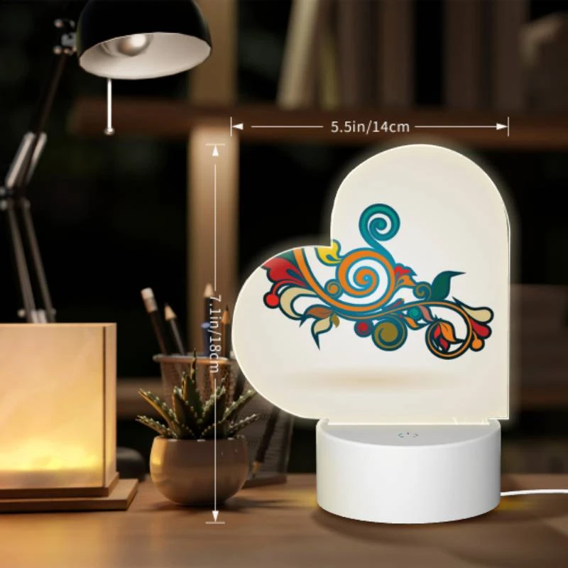 Love Acrylic Night Light, A Colorful And Swirly Design With Leaves And Flowers.