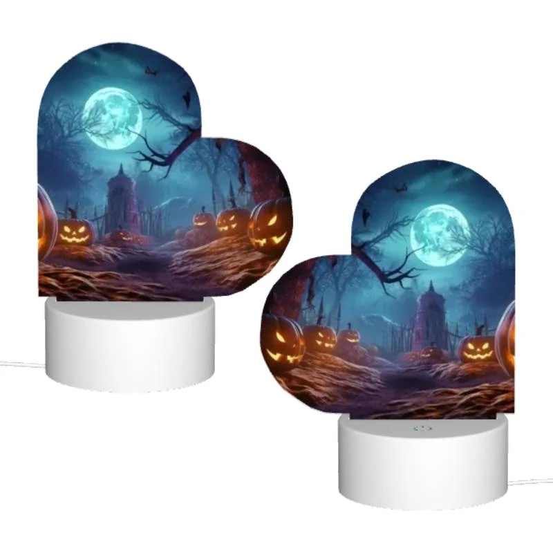 Love Acrylic Night Light, A Night Scene With A Full Moon And A Bunch Of Pumpkins.