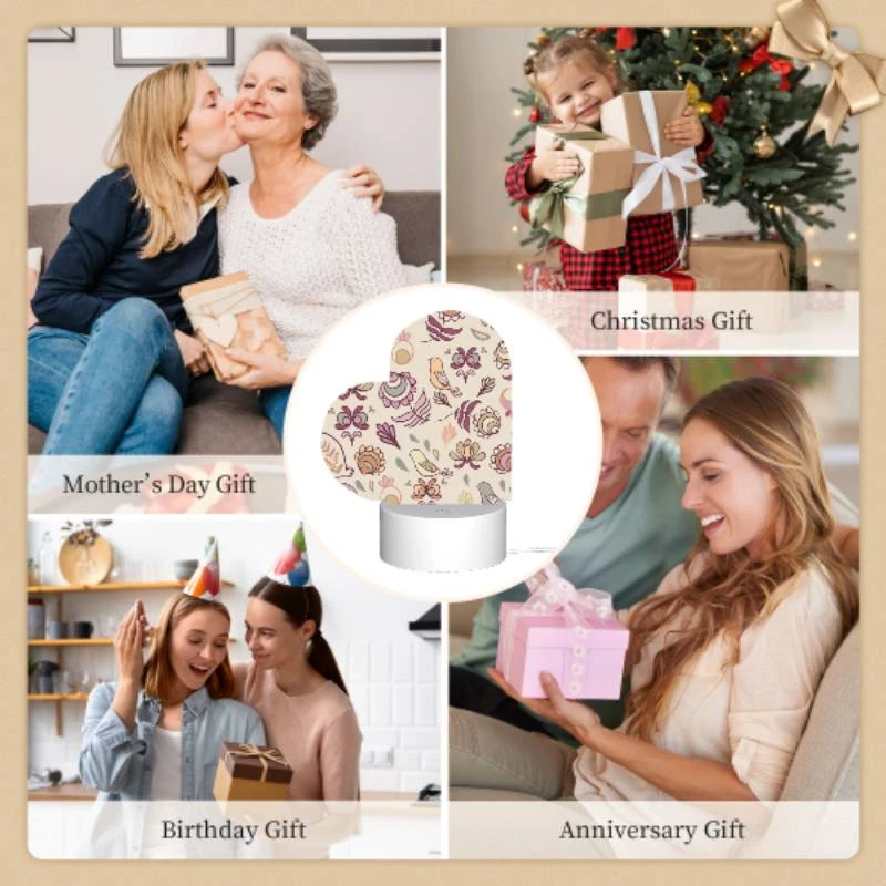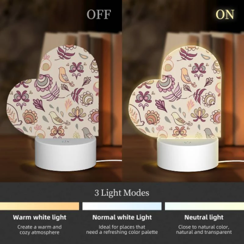 Love Acrylic Night Light, A Pattern Of Flowers And Birds On A Wallpaper.