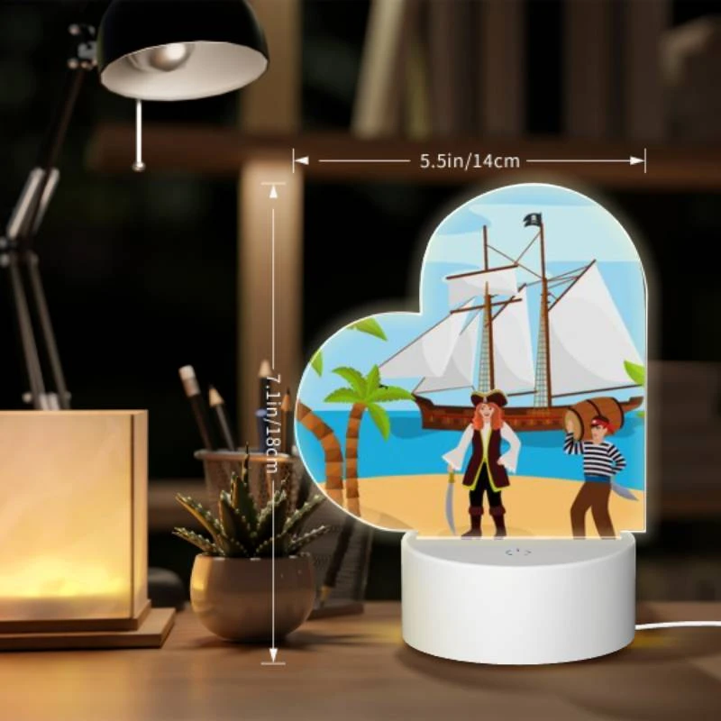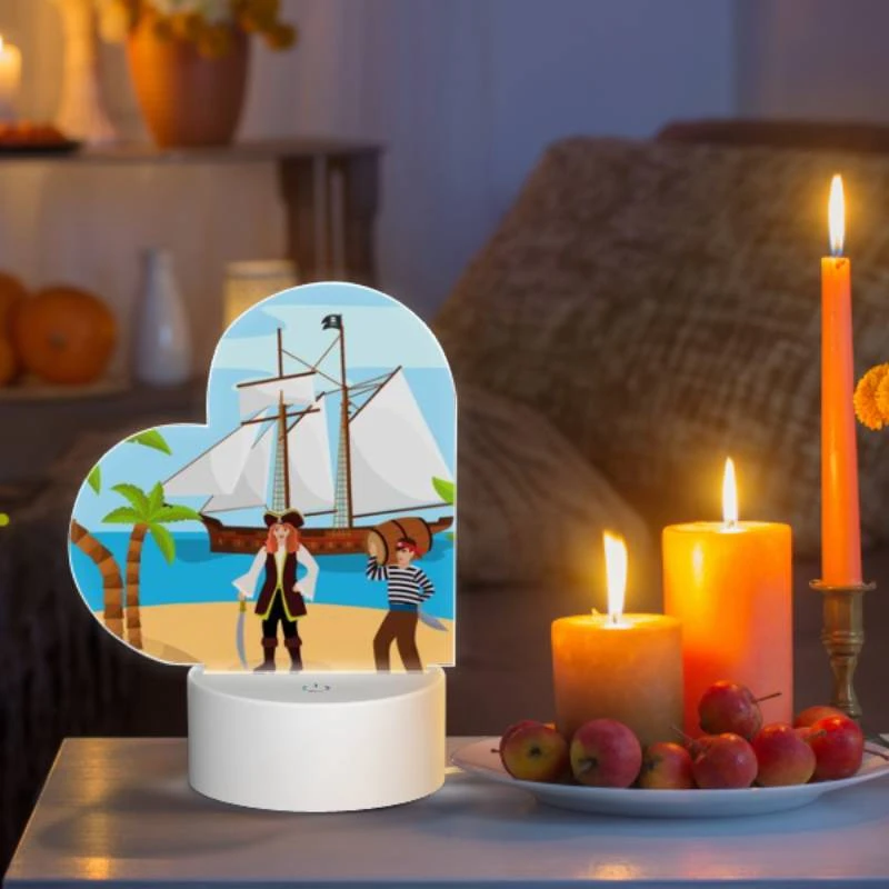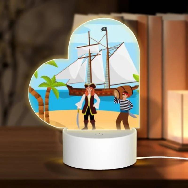 Love Acrylic Night Light, A Pirate And His Crew Are Standing On A Sandy Beach.