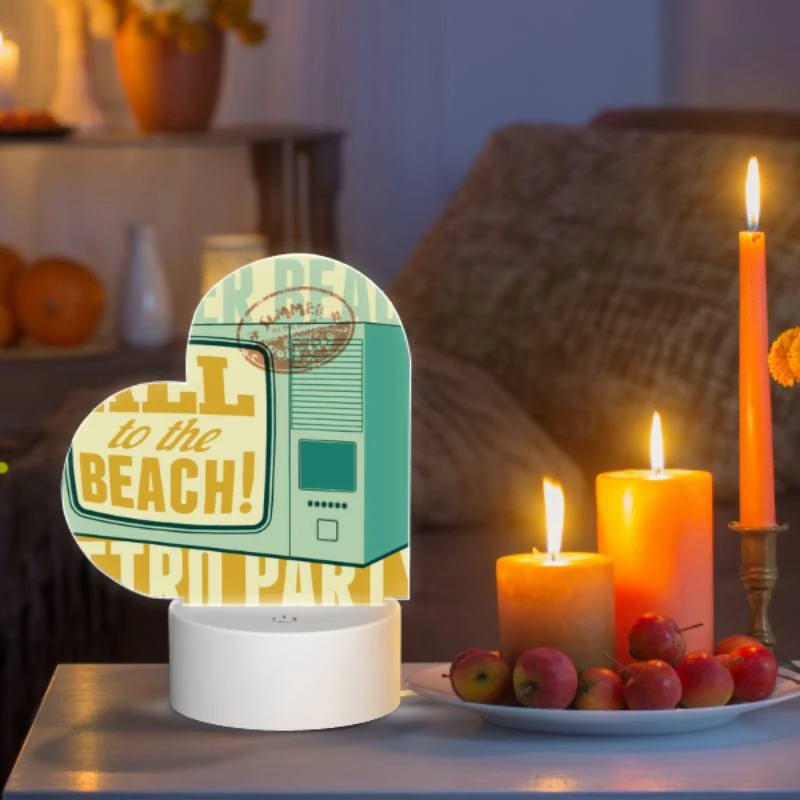 Love Acrylic Night Light, A Retro TV Is Advertising A Beach Party.