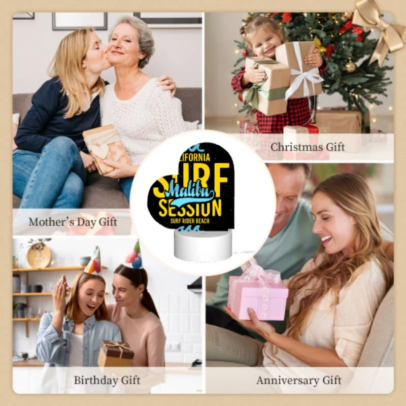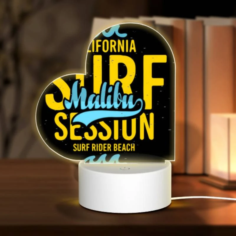 Love Acrylic Night Light, A Surfboard With The Words California Surf Session On It.