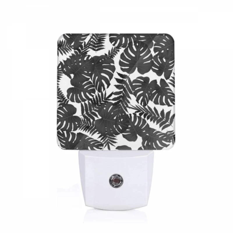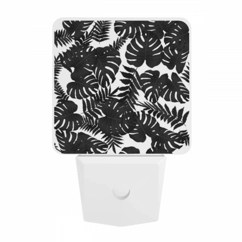 Night Light, A Black And White Photo Of A Leafy Plant.