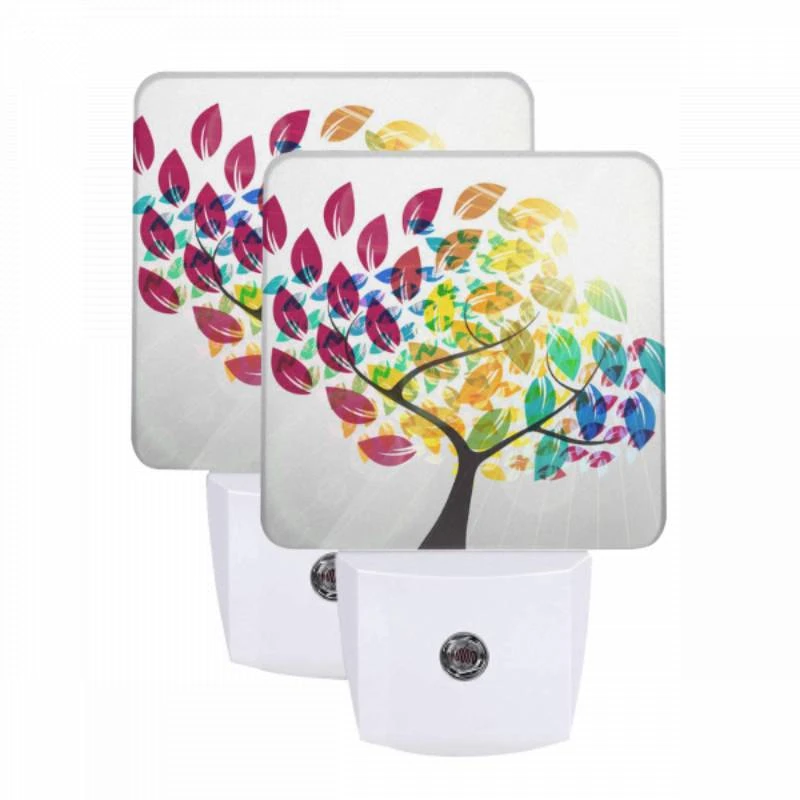 Night Light Set Of 2, A Tree With Many Different Colored Leaves.