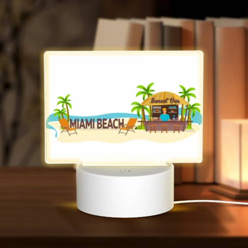 Rectangular Acrylic Night Light, A Beach Bar With A Man Standing Behind It.