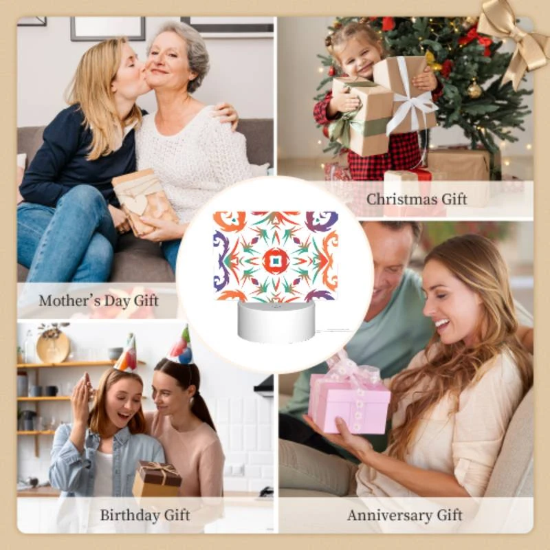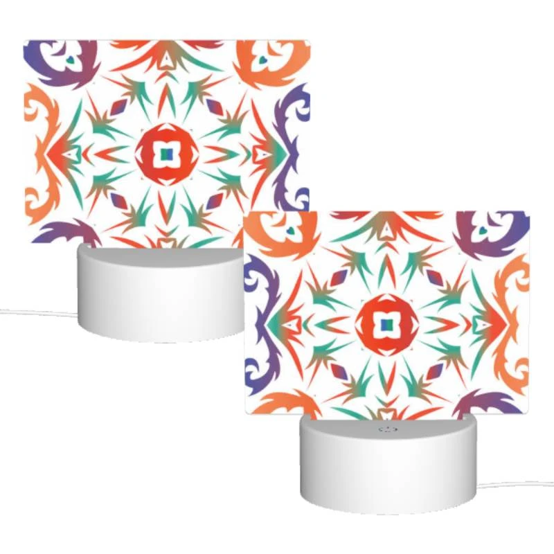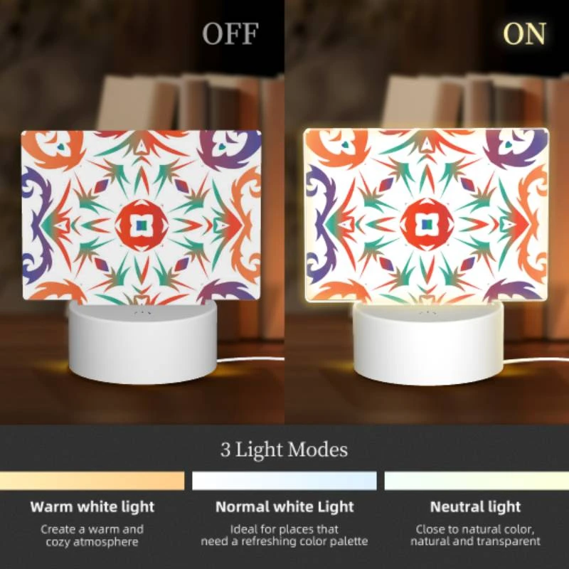 Rectangular Acrylic Night Light, A Colorful Design With A Central Circle.