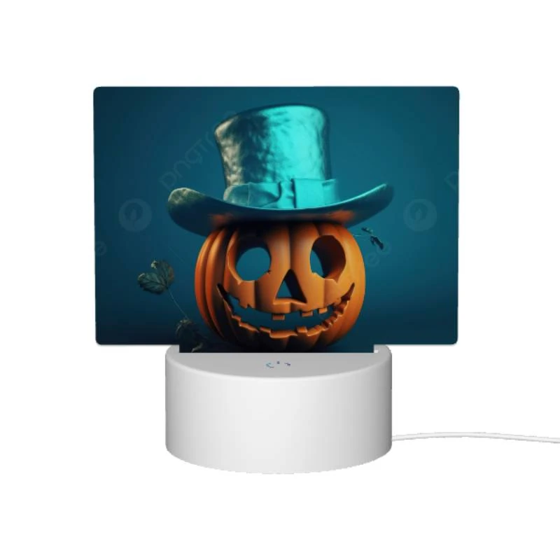 Rectangular Acrylic Night Light, A Pumpkin With A Top Hat And A Smile On Its Face.