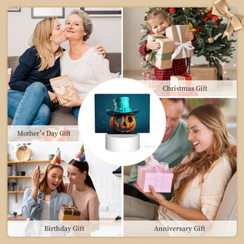 Be the first to review “Rectangular Acrylic Night Light, A Pumpkin With A Top Hat And A Smile On Its Face.” Cancel reply