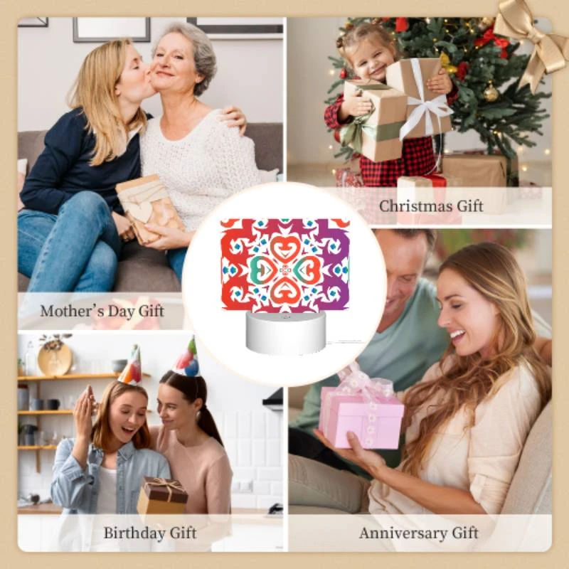 [Product Performance] The night light is composed of an acrylic light board and a plastic base. The night light has 3 light options (white light, warm light, warm white light). Touch to switch the light mode, which is soft and not dazzling, harmless to the eyes, and accompanies you into sweet dreams every night, creating a comfortable sleeping environment.