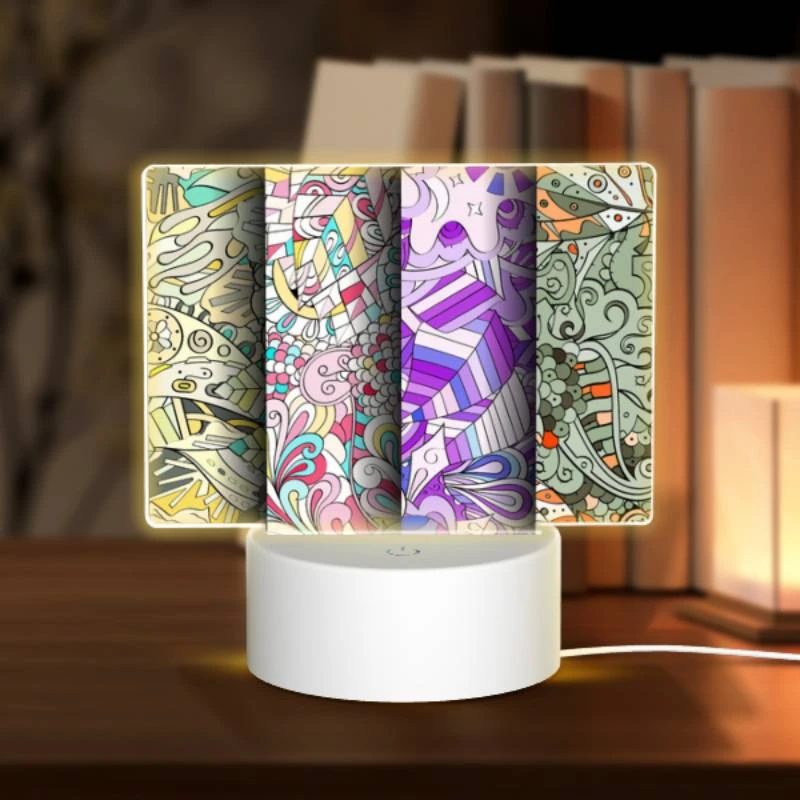 Rectangular Acrylic Night Light, Three Colorful Paintings Are Displayed Side By Side.