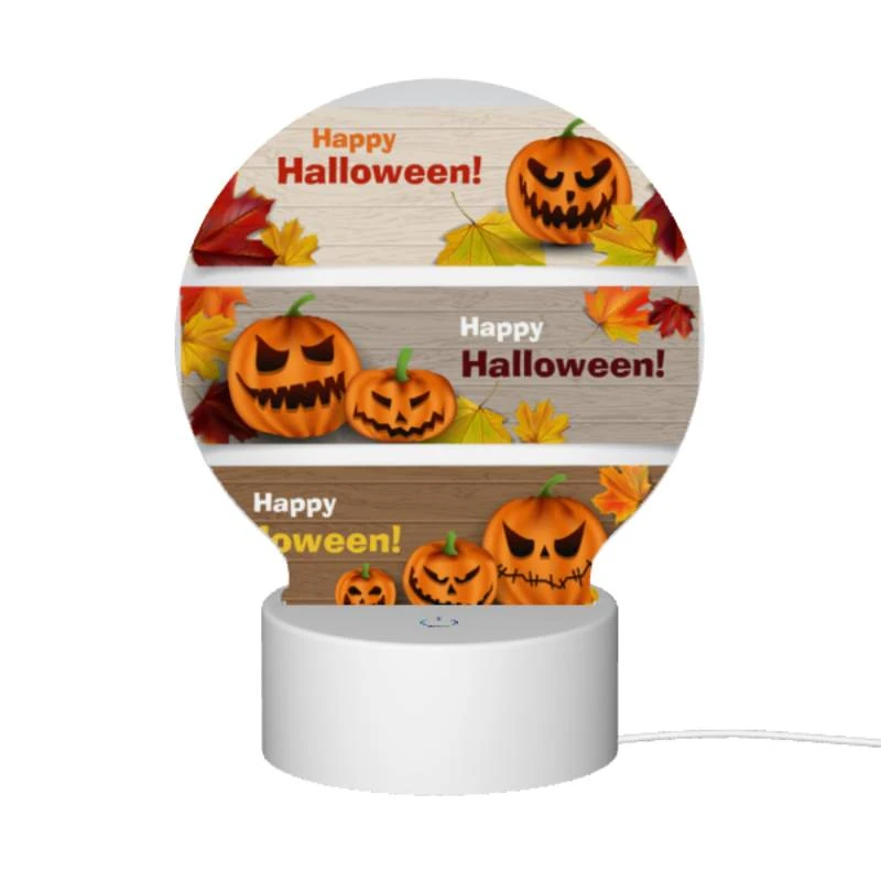 Round Acrylic Night Light, Two Banners With Pumpkins And Leaves On Them