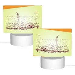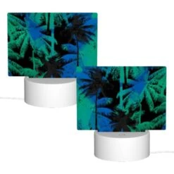 Rectangular Acrylic Night Light, A Beach Scene With A Few Colorful Umbrellas And A Few Palm Trees.