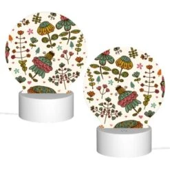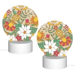 Round Acrylic Night Light, A Colorful Drawing Of Flowers And Leaves.