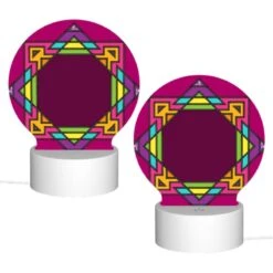 Round Acrylic Night Light, A Colorful Flower Pattern With A Heart Shape.