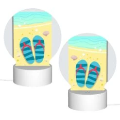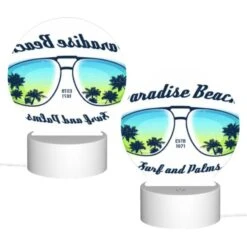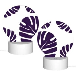 Round Acrylic Night Light, A Pattern Of Leaves On A White Background.