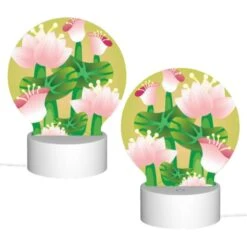 Round Acrylic Night Light, A Pattern Of Flowers And Stars With A Pink Rose In The Center.
