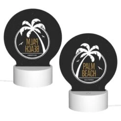 Round Acrylic Night Light, A Pattern Of Leaves On A Black And White Background.