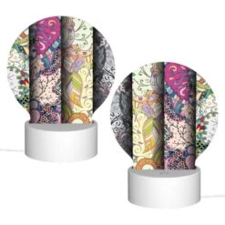 Round Acrylic Night Light, Four Different Colored Designs Of Flowers.