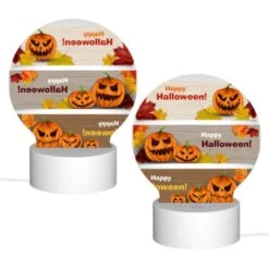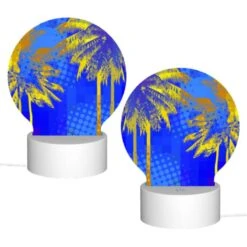 Round Acrylic Night Light, Three Colorful Artworks Are Displayed Side By Side.